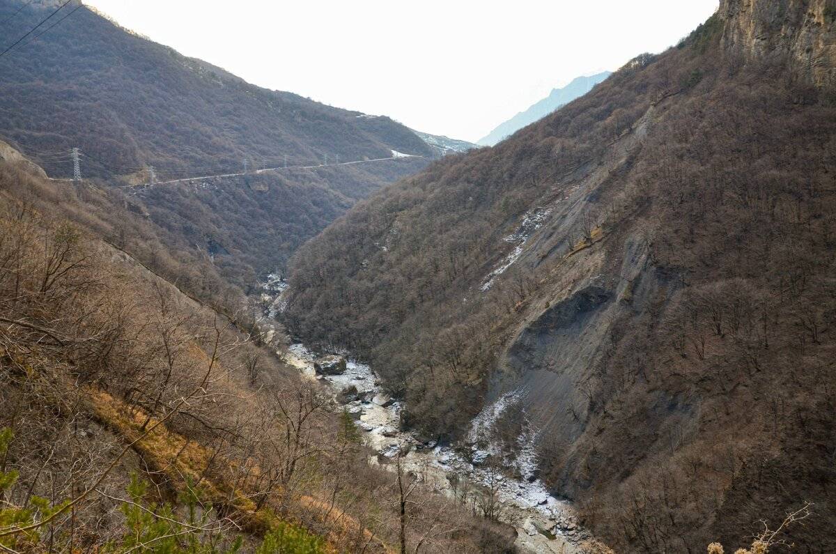 Хребты тянутся через поселки Жанхотеко и Лакшуты. С одной стороны ущелья видны известняковые отвесные стены желтоватого цвета, с другой – обрыв к реке Баксан.