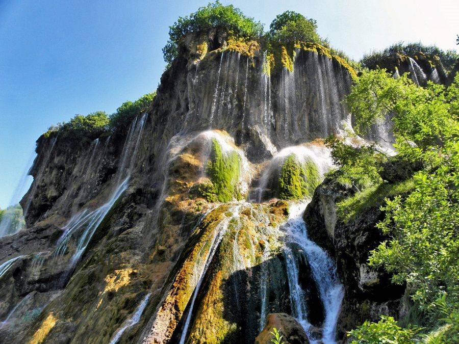 Водопады падают со скалы высотой более 55 метров, кажется, что скалы и деревья нависают над головой огромным зонтом, по краям которого струится вода. Особенно красив водопад в ясную погоду, он наполнен солнечными лучами и отблесками красочной зелени, а в облаке брызг появляется множество радуг.