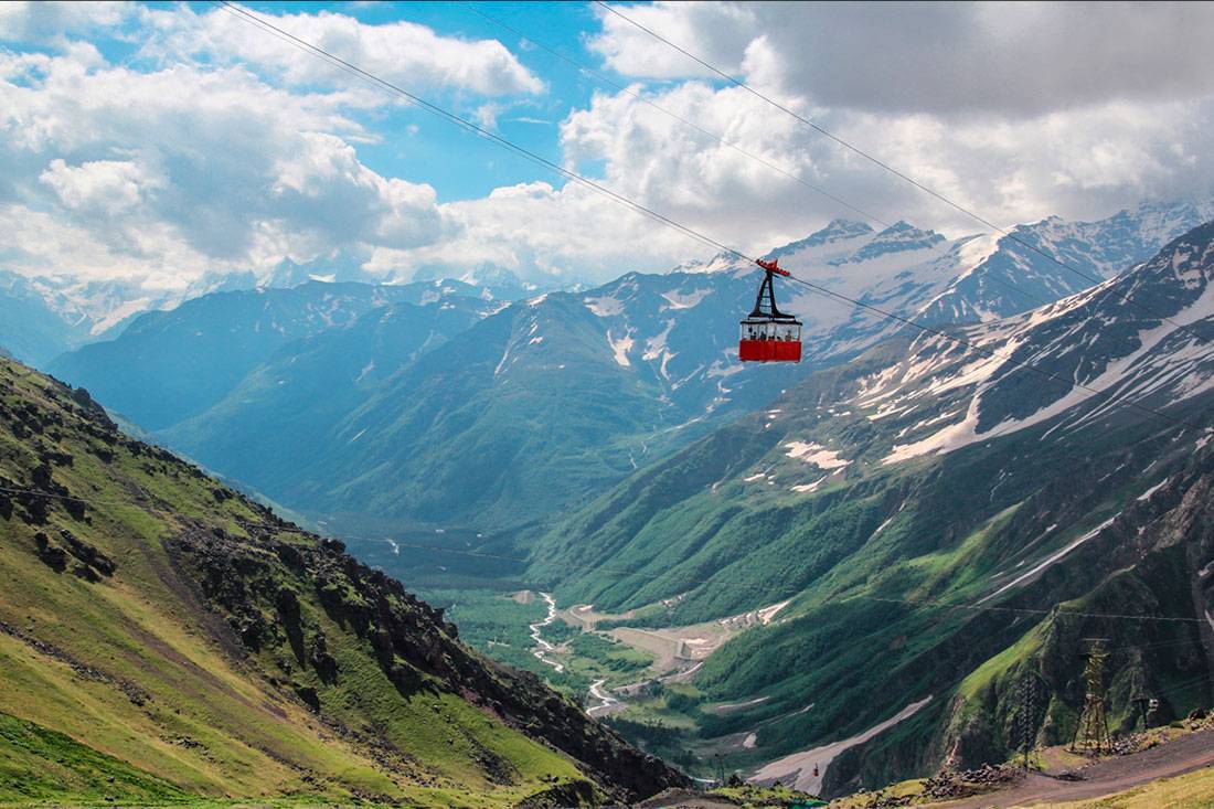 А какие виды открываются с Чегета! Возможность полюбоваться этой красотой искупает все неудобства. Вы обязательно согласитесь с этим уже на подъемнике, который доставит вас на высоту 3050 метров. Скорость его движения, наверное, специально сделали небольшой, чтобы пассажиры имели возможность вдоволь полюбоваться потрясающими пейзажами.