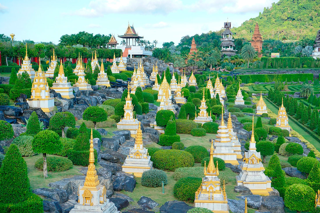 - Тропический сад Нонг Нуч – экзотическая площадка с тысячами растений и замысловатыми дорожками, истинное украшение городской среды;