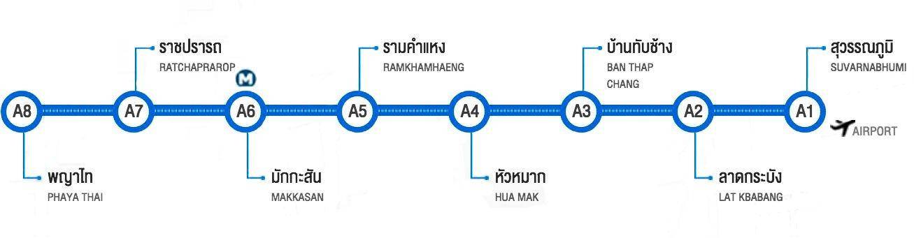 - Express Train: быстрый вариант, едет без остановок и доезжает до станций Makkasan или Phaya Thai за 15 и 17 минут соответственно.