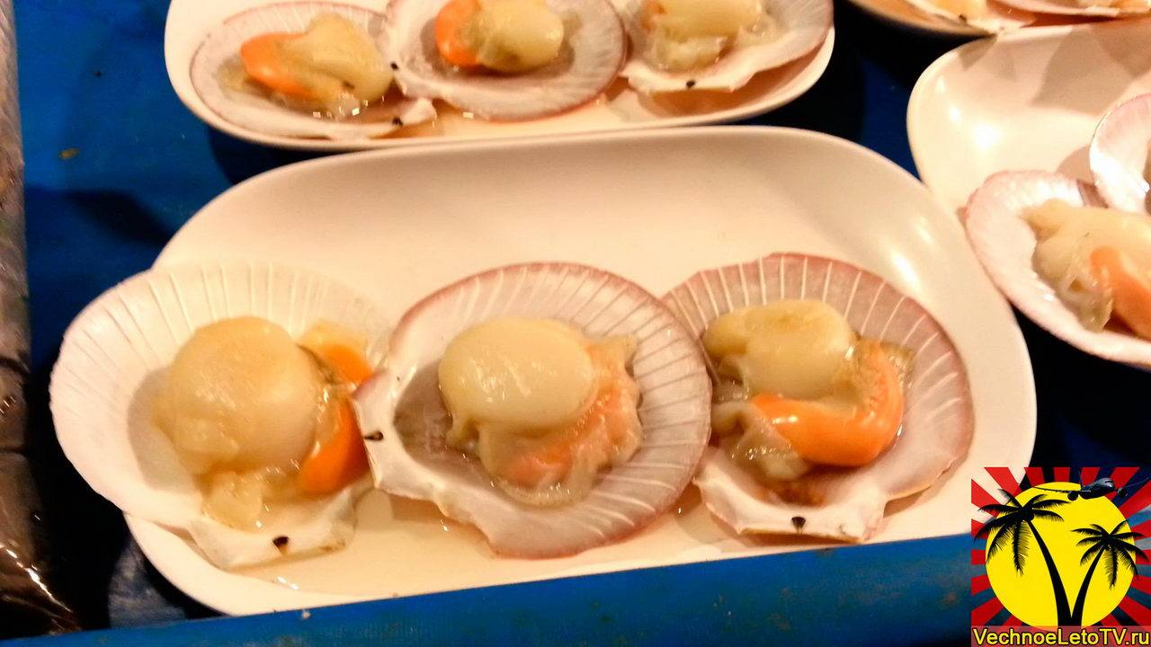 На фото ниже видно, что 100г сибаса стоит 60/80 бат. При взвешивании можно (нужно) поторговаться и с 400 бат скинуть минимум 50.