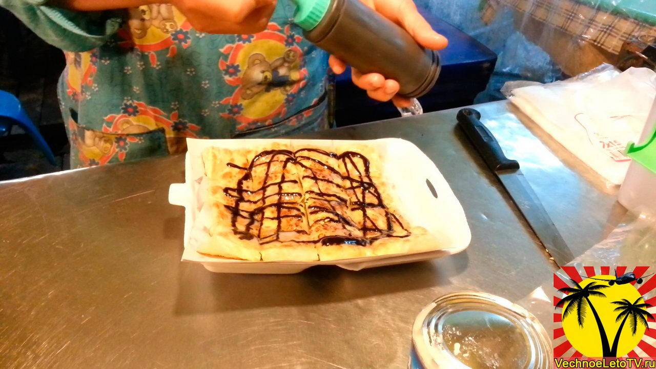 Тайские блинчики. Отличный и недорогой десерт (40 бат) с различными наполнителями: с орехами, изюмом, сгущёнкой, бананом, шоколадом и т.д.