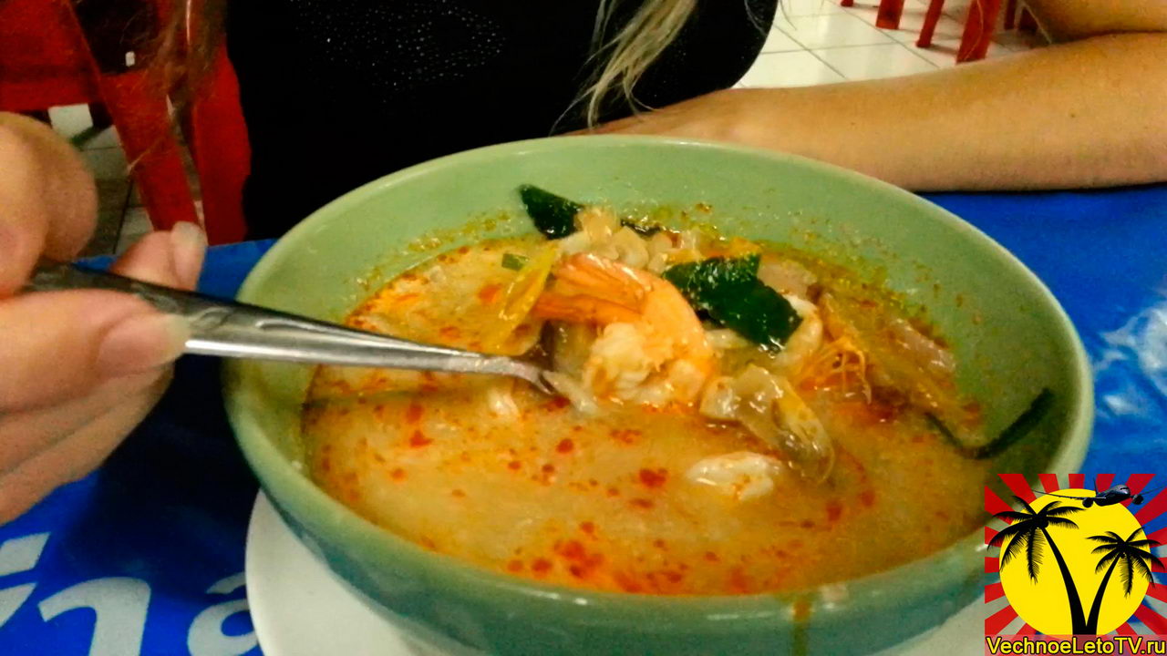 Том Ям – знаменитый тайский острый суп, который вызывает восторг, практически у всех иностранцев. Кстати, порции здесь очень большие. Одного супа хватает на двоих. Многие даже пытаются готовить его дома самостоятельно по возвращению из Тайланда.