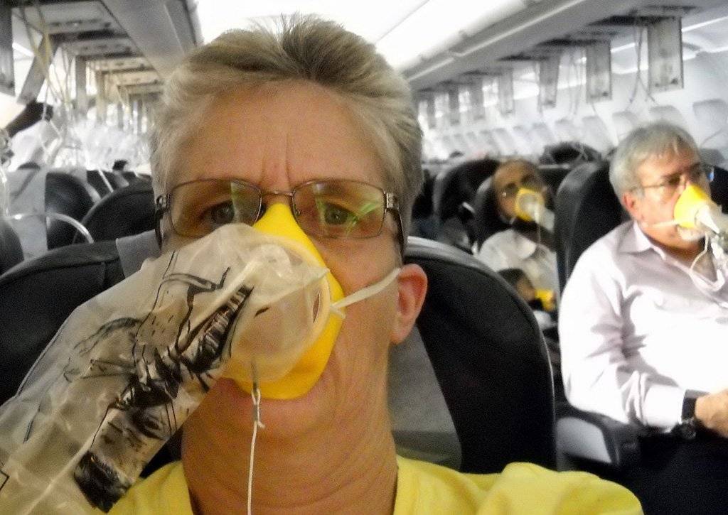 Во-вторых, при разгерметизации самолета необходимо воспользоваться кислородными масками. В случае аварийной ситуации они автоматически выпадают из специальных верхних отсеков.