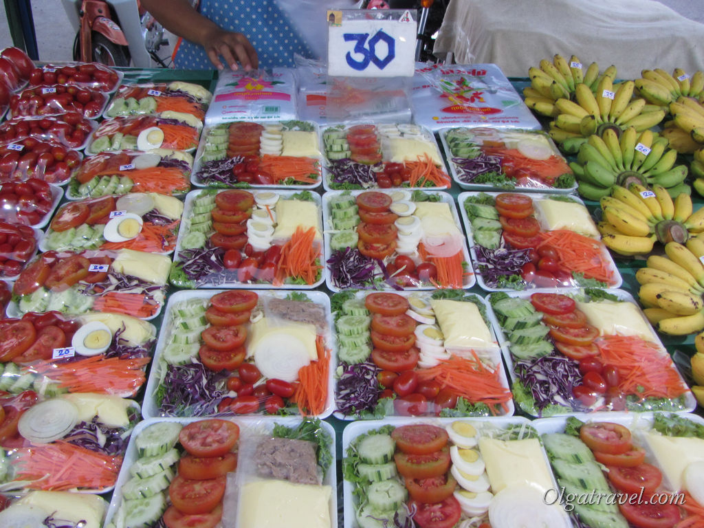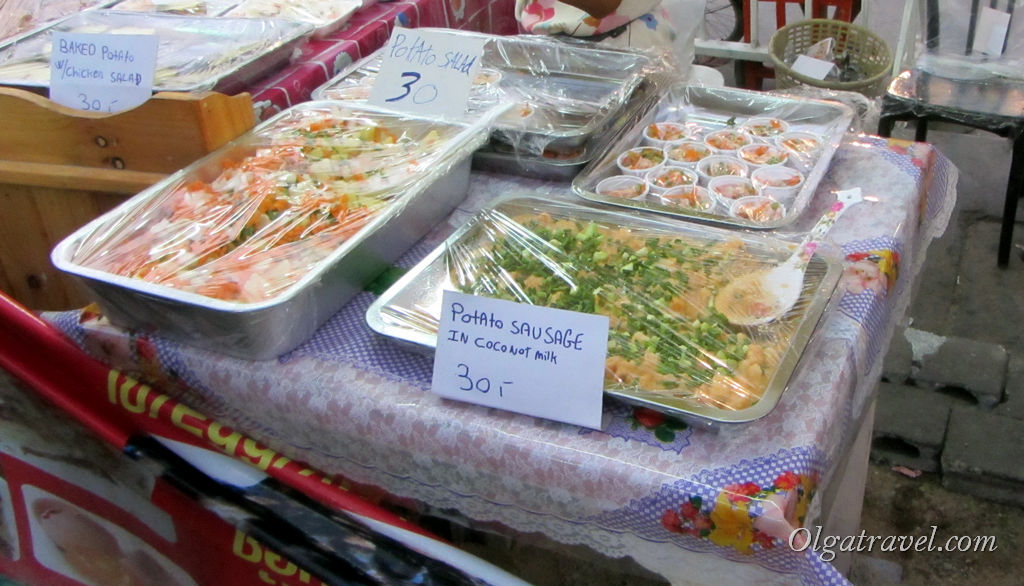 На счет уличной еды в Паттайе мы заметили следующее: если в Чианг Мае вся еда очень свежая, ее очень быстро разбирают (например, наше любимое мясо с чесноком, которое продавалось недалеко от нашего кондо, можно было купить только с 5 до 7-8 вечера. Если приходили позже, оставались только остатки), то тут в конце вечера в у торговцев оставалось много еды, и эту недоеденную еду они продавали и на следующий день. Не внушала нам доверие Паттайская уличная еда