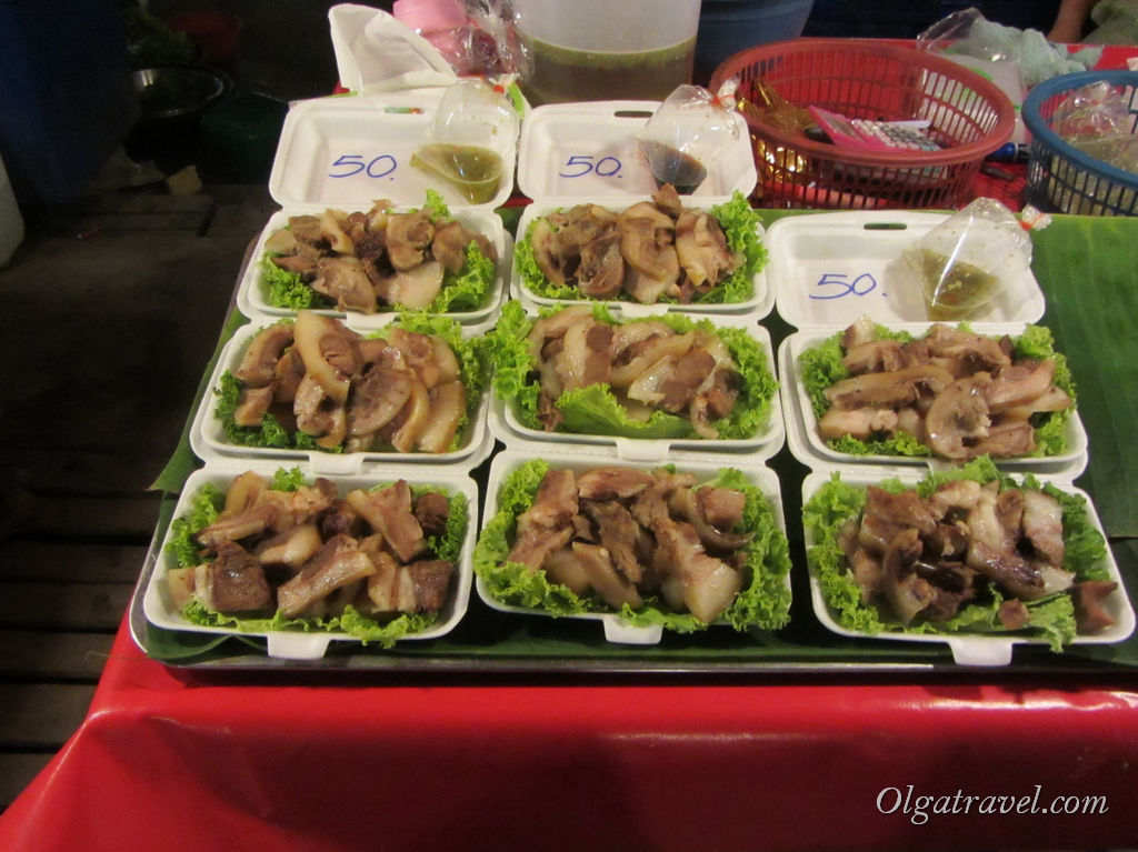 Еще один ночной рынок с едой (работает с пятницы по воскресенье) расположен в конце улицы Thepprasit, недалеко от Теско Лотос. Мы приехали туда уже к закрытию, поэтому еду не попробовали, но запахи и обстановка там не понравилась.