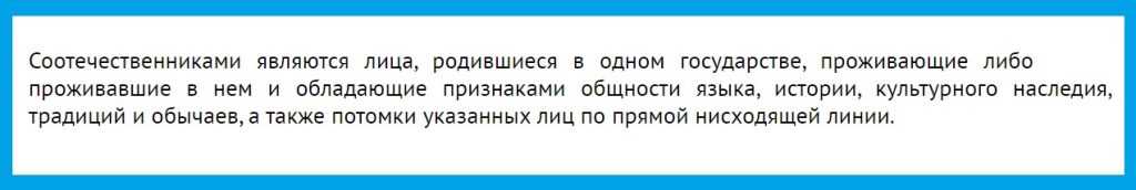 Из названия проекта видно, что он направлен на соотечественников. Согласно Федеральному закону N 99-ФЗ, под этим словом понимается следующее: