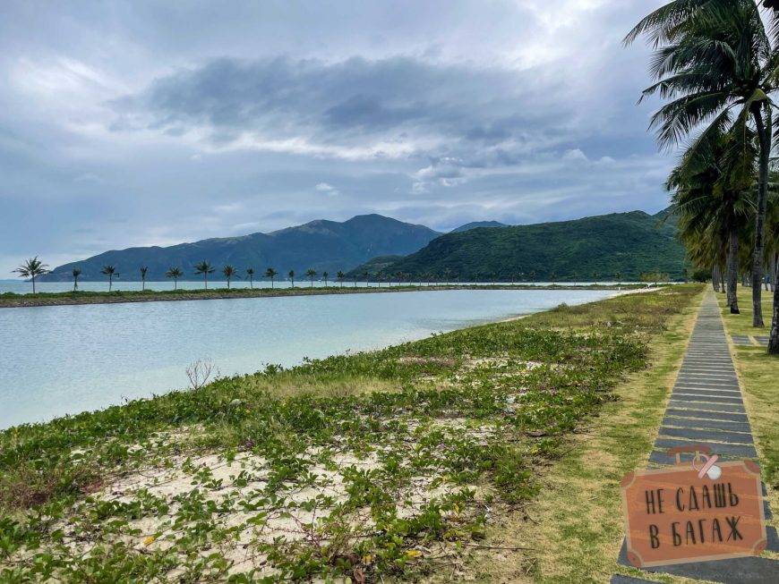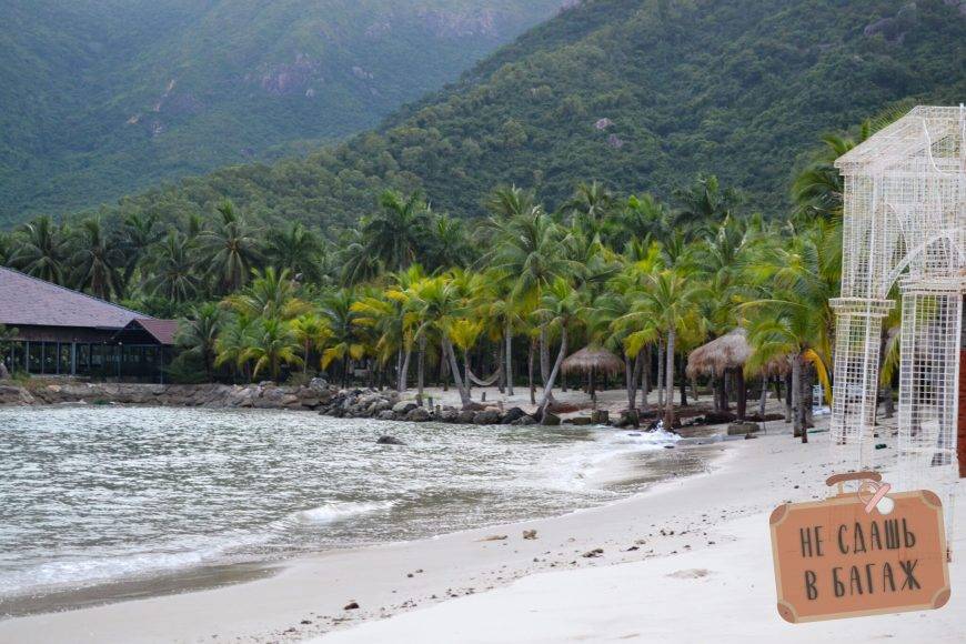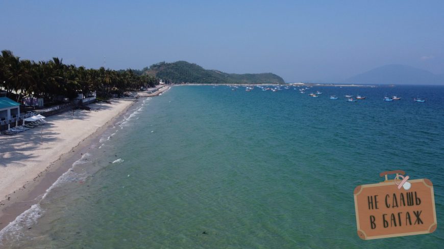 Море здесь в бухте, поэтому зимой волн практически нет, а если и есть, то гораздо меньше, чем на центральных пляжах в Нячанге. В песочек такой мелкий-мелкий и белый-белый.