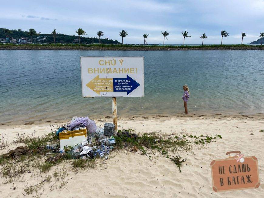 - Вторая попытка была в январе. На северном пляже Нячанга уже была тишь да гладь на море, здесь волны были небольшие, но появилась куча мусора. Он был везде — на пляже, под шезлонгами, в воде. Здесь можно было найти все: от плавающих шлепок и шорт, пластиковых пакетов, подгузников, бутылок, до сумок, кошельков и огромное количество мертвой рыбы.