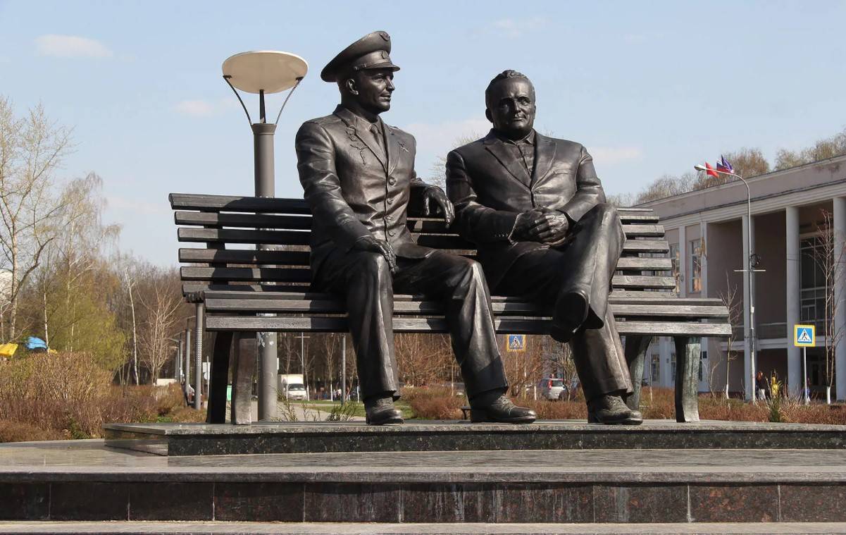 Памятник С. П. Королеву и Ю. А. Гагарину в Королеве на площади возле ДК им. Калинина.