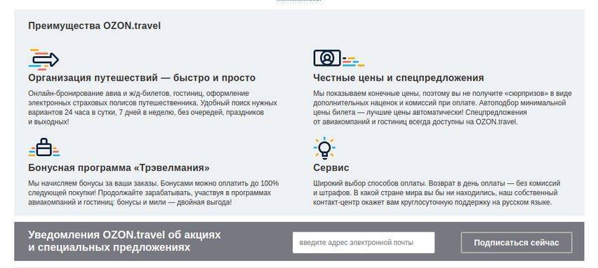 Обратите внимание! Для пользования сервисов ozon.travel основным условием является регистрация учетной записи