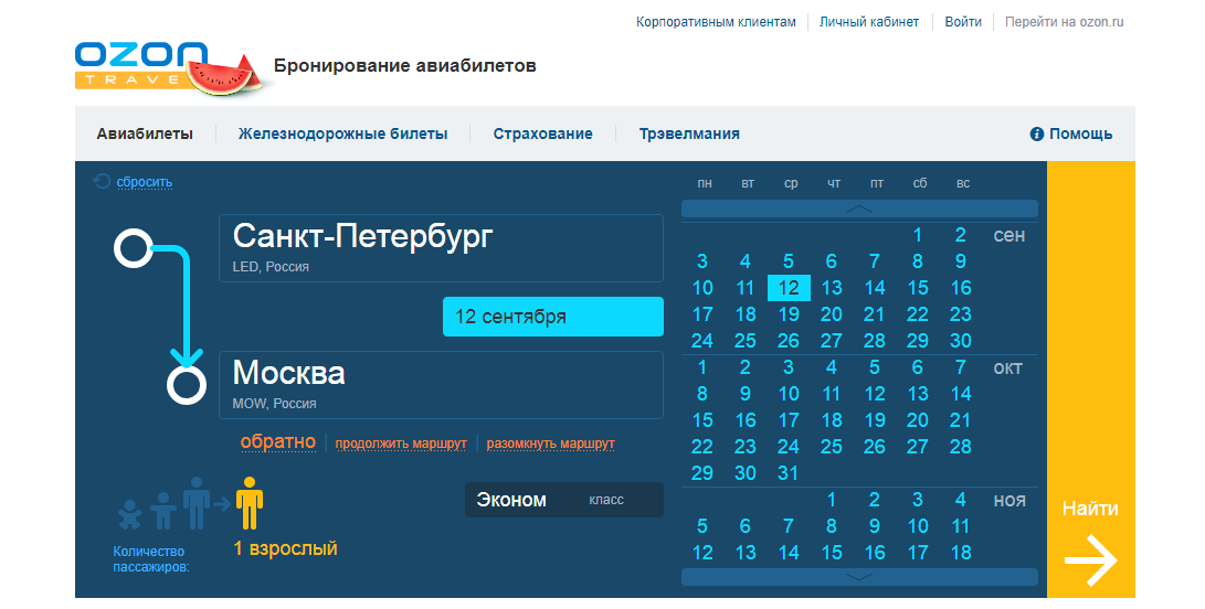 Обратите внимание, что сервис дает возможность приобрести билеты не только на рейсы в одну сторону или туда-обратно, но и на целые маршруты, в том числе ступенчатые. Маршрут можно разомкнуть, то есть на одном из этапов поездки взять через ozon travel авиабилеты не из того города, куда ранее прилетал