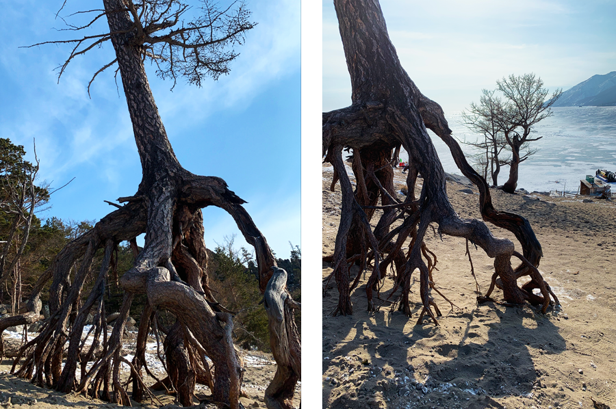 Ходульные деревья – диковинная достопримечательность этих мест. Песчаная почва вымывается ветром и водой, обнажая корни деревьев на высоту человеческого роста. Иногда, кажется, что лес вот-вот пойдет, скрипя причудливыми ножками-корягами. Деревья выглядят как футуристические деревянные пауки из какого-то фантастического фильма или коварные пособники Бабы-Яги из сказки, это уже у кого как фантазия пойдет.