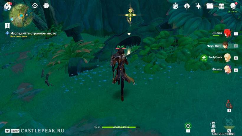 Исследуйте большую шестерёнку, в которой копается хиличурл.