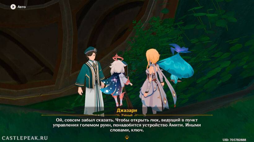 Для того, чтобы попасть в пункт управления големом, по словам учёного, нужен ключ — устройство Амити. К счастью, Джазари знает, где его найти: у антиквара по имени Роинджан в Порт-Ормосе.