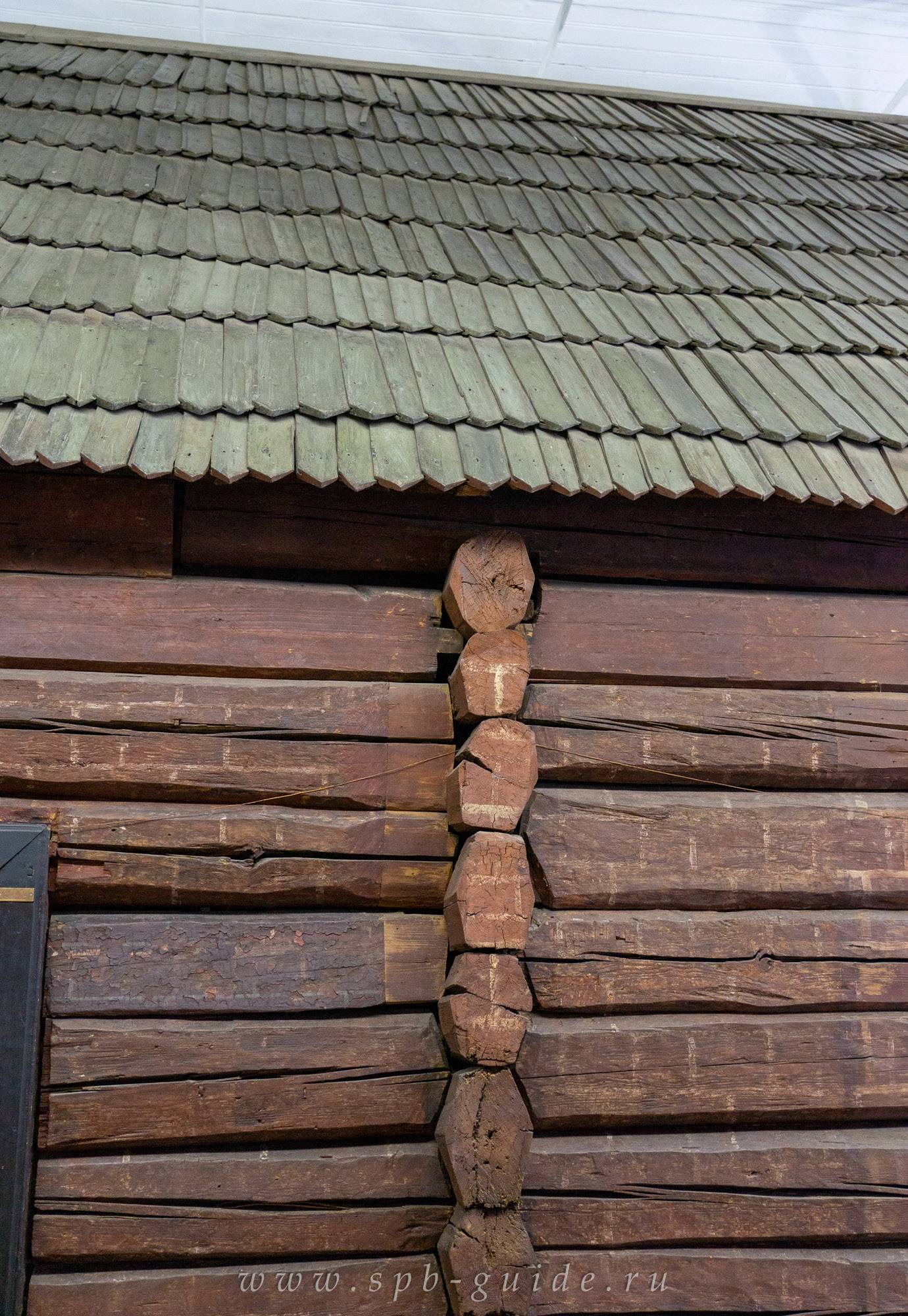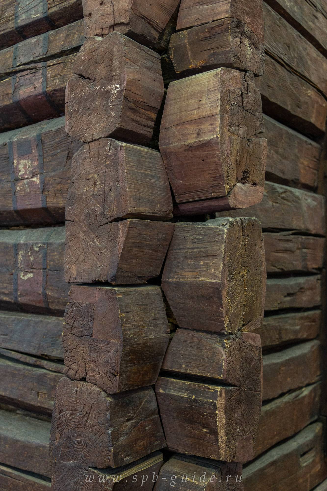 На брёвнах видны сдеды краски от нарисованных кирпичей, поскольку Пётр хотел чтобы новая столица строилась из камня