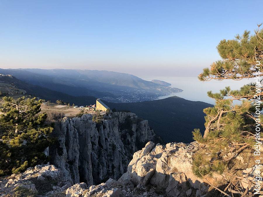 Ай-Петри — это непосредственно гора и протяженное примыкающее к ней плато Ай-Петри. На вершине оборудована смотровая площадка с панорамными видами на морское побережье и Ялту. Интерес представляют знаменитые зубцы Ай-Петри, смотрятся очень фотогенично. Между зубцами протянуты подвесные мостики — экстремальный аттракцион. Честно говоря, на фото этот мостик выглядит совсем не страшно, а в реальности, когда видишь эту пропасть под ногами, нервишки шалят.