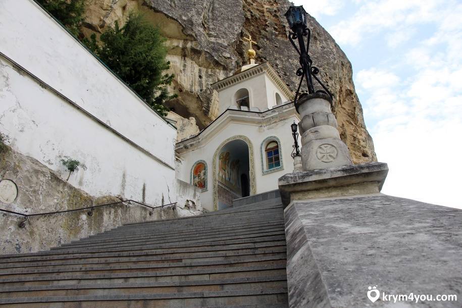 В окрестностях Бахчисарая находится Свято-Успенский мужской монастырь, который расположен на скалистой поверхности. Он был возведен в 8-м веке нашей эры. В монастыре проживает от 50 до 100 человек. Символом монастыря является колокольня, которую сохранили еще с древних времен.Поднимаешься на смотровую площадку монастыря и дух захватывает от величественной природы, которая окружает монастырь. Подробнее о Свято-Успенский мужской монастыре.
