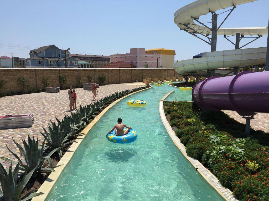 - Занимает территорию в 4 гектара, на которых разместилось 8 бассейнов, более 20 водных горок и аттракционов для посетителей разных возрастов.