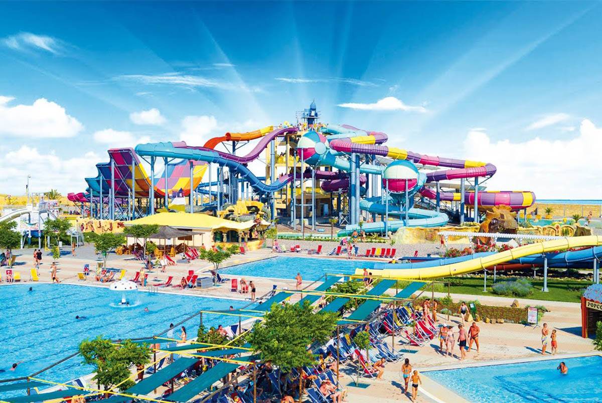 Аквапарк находится в окрестностях курорта. Он расположен в 10 минутах езды на автобусе из центра Евпатории. Он является самым крупным и современным парком водных развлечений на полуострове. Площадь территории, которую он занимает, составляет 40 000 м².