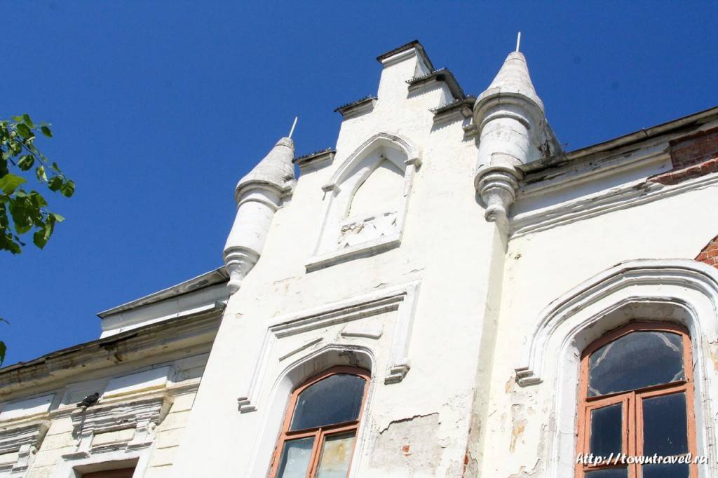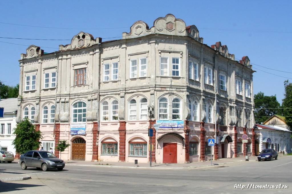 Но вернемся к архитектуре города. Это здание Касимовского техникума водного транспорта, ранее — Дом купца Смирнова. Местонахождение города на большой реке наверняка располагает местных жителей к мечтам о далеких морских странствиях. Вот тут-то и приходит на помощь техникум водного транспорта. Сейчас это учебное заведение имеет статус областного и готовит специалистов для Московского речного пароходства.