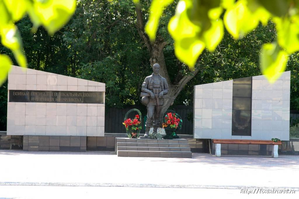 По левую сторону можно увидеть памятник воинам, погибшим в локальных войнах и военных конфликтах.