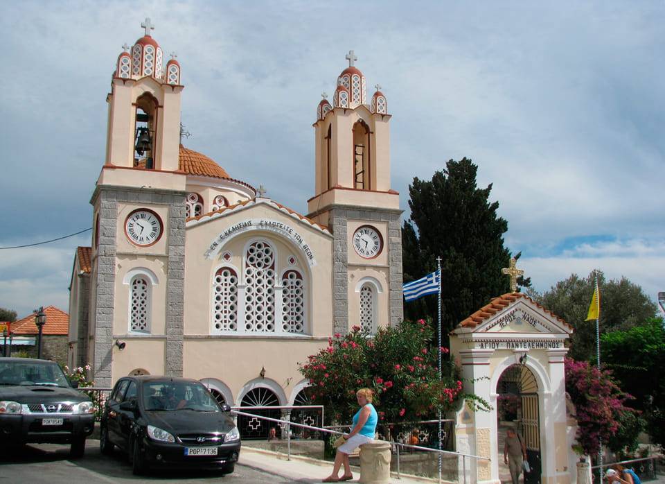 В небольшой деревушке, популярной у туристов, спешащих купить мёд, масло, предметы местных умельцев, находятся две церкви Святого Пантелеймона. Одна из них старинная (период постройки XV век). Выполнена она из крупных каменных глыб, без колокольни с крестом на крыше. Новый храм,возведённый в честь святого Пантелеймона (целителя, почитаемого в Греции) небольшой, но очень изящный. Элементы из сплетённых белых кругов, похожих на кружева, придают ему торжественный, праздничный вид.