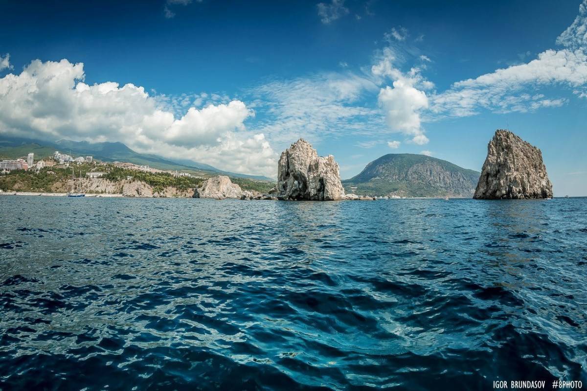 Скалы Адалары — это два крошечных островка посреди моря. Они являются одним из самых знаковых символов Гурзуфа. Раньше Адалары были частью берега, но из-за тектонических смещений они отделились.