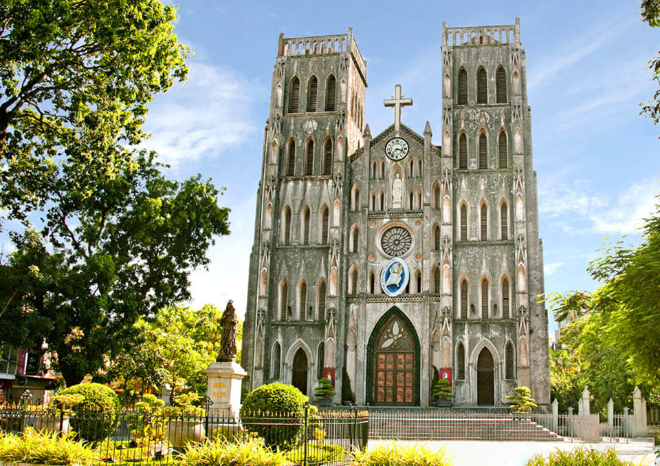 Храм построили французы в конце 19 века. По внешнему виду он напоминает Нотр Дам де Пари. И во времена колонизации это было главное место для моления католиков. Чтобы построить Сен-Жозеф, французские власти снесли пагоду Бао Тьен. А после ухода французов для собора наступили трудные дни. Священники подвергались репрессиям, а сокровища собора расхищались. В конце концов Сен-Жозеф закрыли. Но в 1990 году собор вернули верующим, и на Рождество 1990 года здесь отслужили первую мессу.