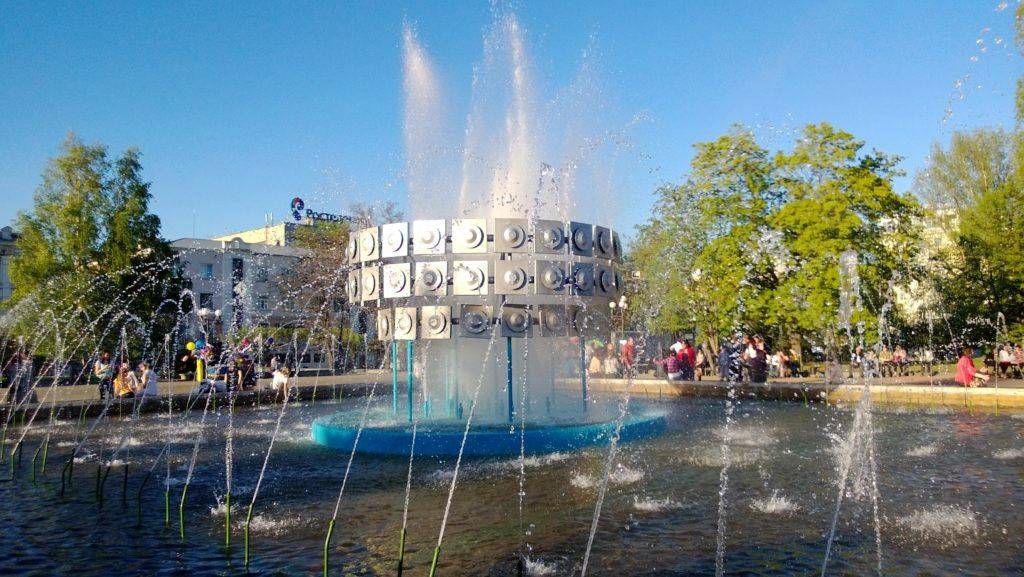 Далее следует площадь с памятником Карлу Марксу, за ней площадь в. И. Ленина, в промежутке между ними – Фонтанная площадь, примечательная тем, что когда-то здесь был включен первый в России фонтан со светомузыкой. Сегодня, конечно, довольно примитивные спецэффекты уже никого не удивляют, а вот хиты советских времен вызывают светлую ностальгию и умиляют. На этой же площади есть огромный градусник на стене здания – под ним принято назначать встречи, и не только романтические, и часы с кукушкой, которая напоминает о себе каждый час. Но самое главное: тут демонстрируется знаменитое панно-мозаика из пивных крышечек – арт-объект является точной копией известного полотна Моне «Кружка пива». Для его создания пришлось собрать 55 тысяч пивных пробок.