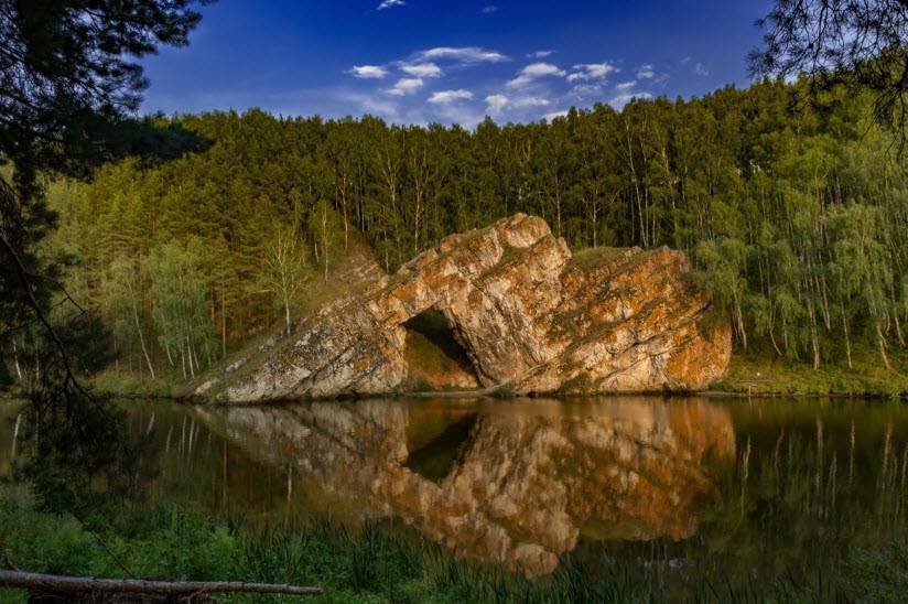 Образования «Семь Братьев» и окружающие их ландшафты — на самом деле очень интересные достопримечательности. Каменск-Уральский (фото ниже это подтверждает), однако, привлекает туристов и еще одной необычной скалой. «Каменные врата» — интереснейший объект, являющийся, по сути, визитной карточкой этого города. Эта необычная скала представляет собой огромный нерукотворный монолит с большим отверстием-входом посередине. Называется она так потому, что по внешнему виду действительно напоминает огромные покосившиеся ворота, одной стороной немного ушедшие под воду.