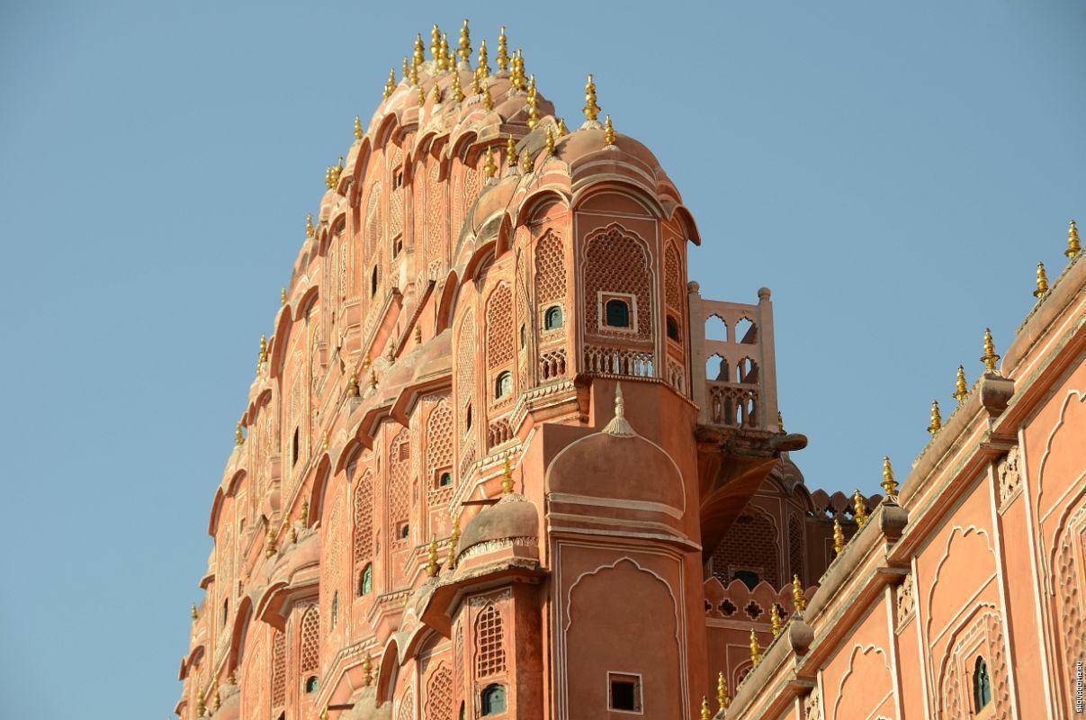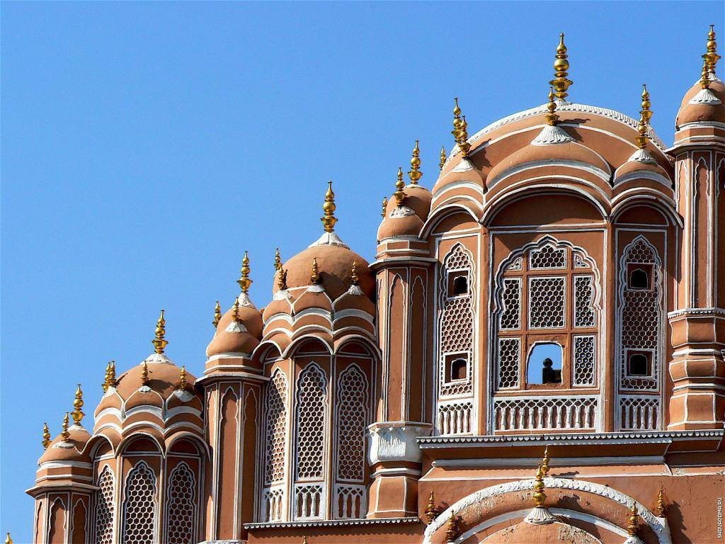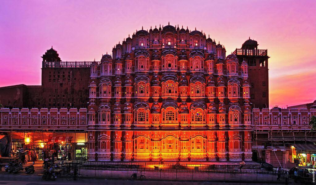 Одна из главных достопримечательностей Джайпура, визитная карточка этого города — Дворец Ветров Хава-Махал. Его популярность среди туристов не удивительна — ведь красотой дворец не уступает древним соборам, а ведь, между тем, в сравнении с теми он весьма и весьма молод. Построен Хава-Махал был в 1799 году по указу местного махараджи для его гарема. Здание выполнено в форме венца Кришны, символизирующего мужскую силу и огненную природу души.