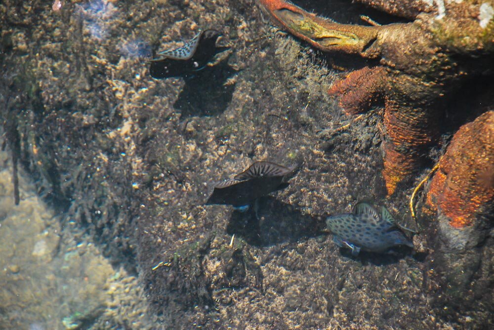 Встречаются в здешних водах и акулы. Не очень крупные: акула-нянька, молот-рыба и черноперая акула. Говорят, что сами они (кроме молот-рыбы) крайне редко первыми нападают на человека. Но ведь нападают! А похожая на сома с усищами акула-нянька свои жертвы засасывает в себя, не кусая их, и издавая при этом звук, похожий на звук поцелуя!)))