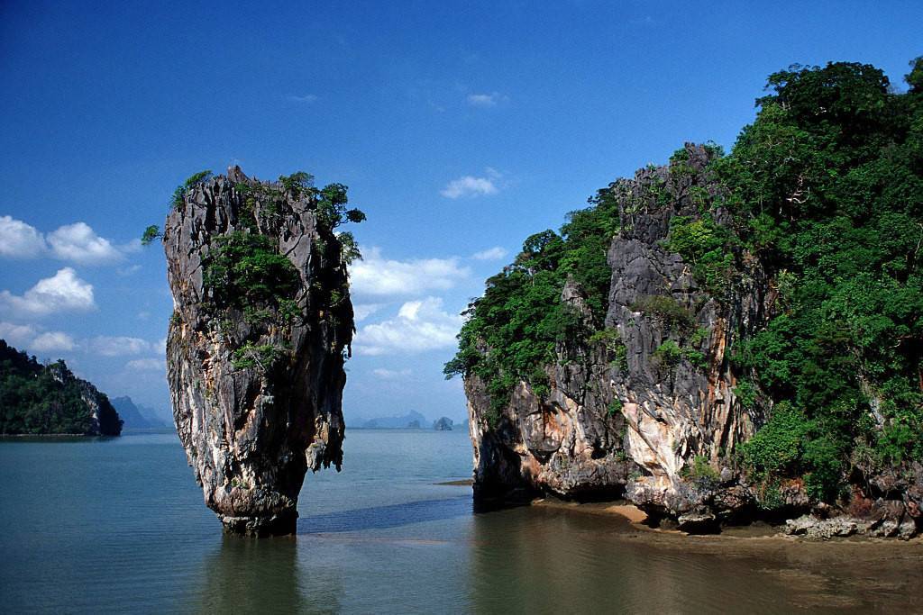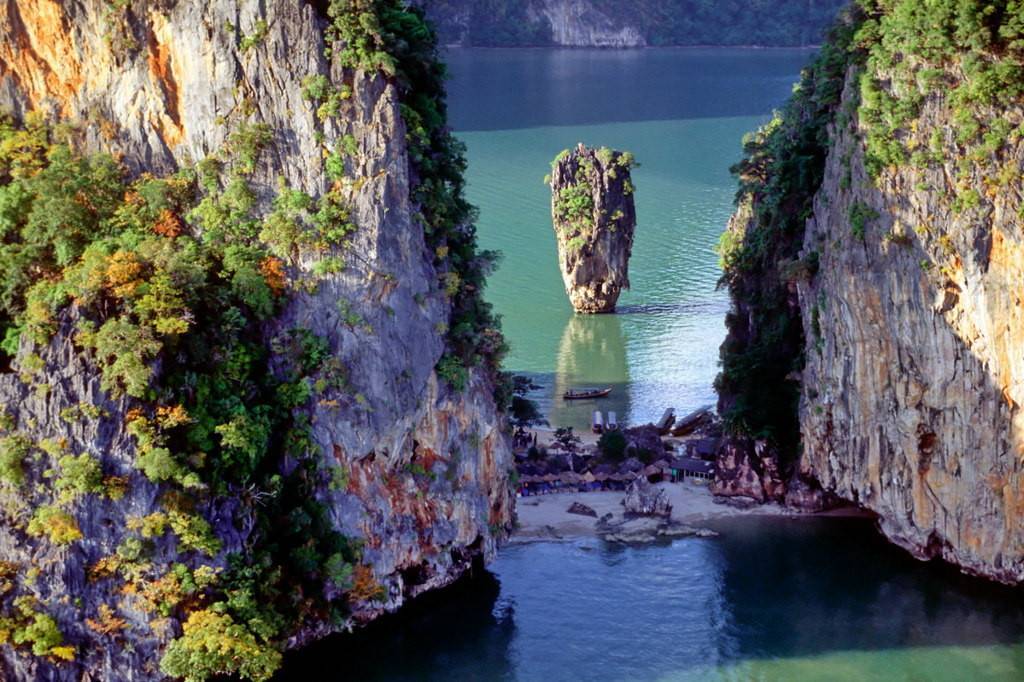 Откуда лучше всего видно остров Джеймса Бонда? С берега острова Као Пинг Кан можно прекрасно рассмотреть знаменитую скалу. Лучше всего отправляться на пляж во время прилива, чтобы скала возвышалась над морем, а не над сушей.