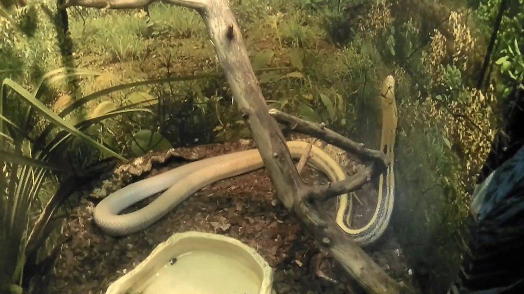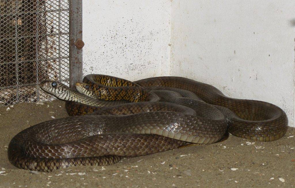 Если ее загнать в тупик, она резко и стремительно атакует. Змея не обладает сильным ядом, поэтому вреда здоровью человека она не наносит.
