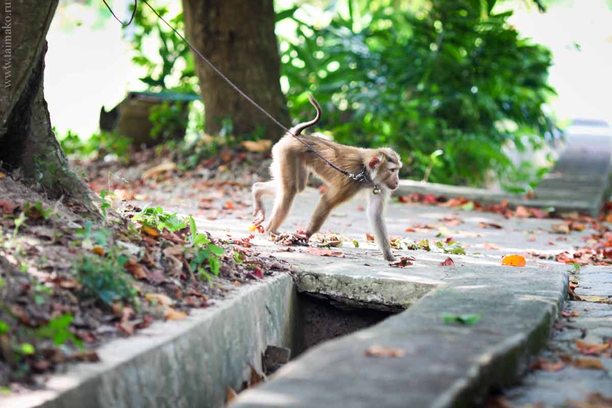 На дороге сидела небольшая обезьянка. Я так разволновалась, что не сразу заметила ошейник и веревку.