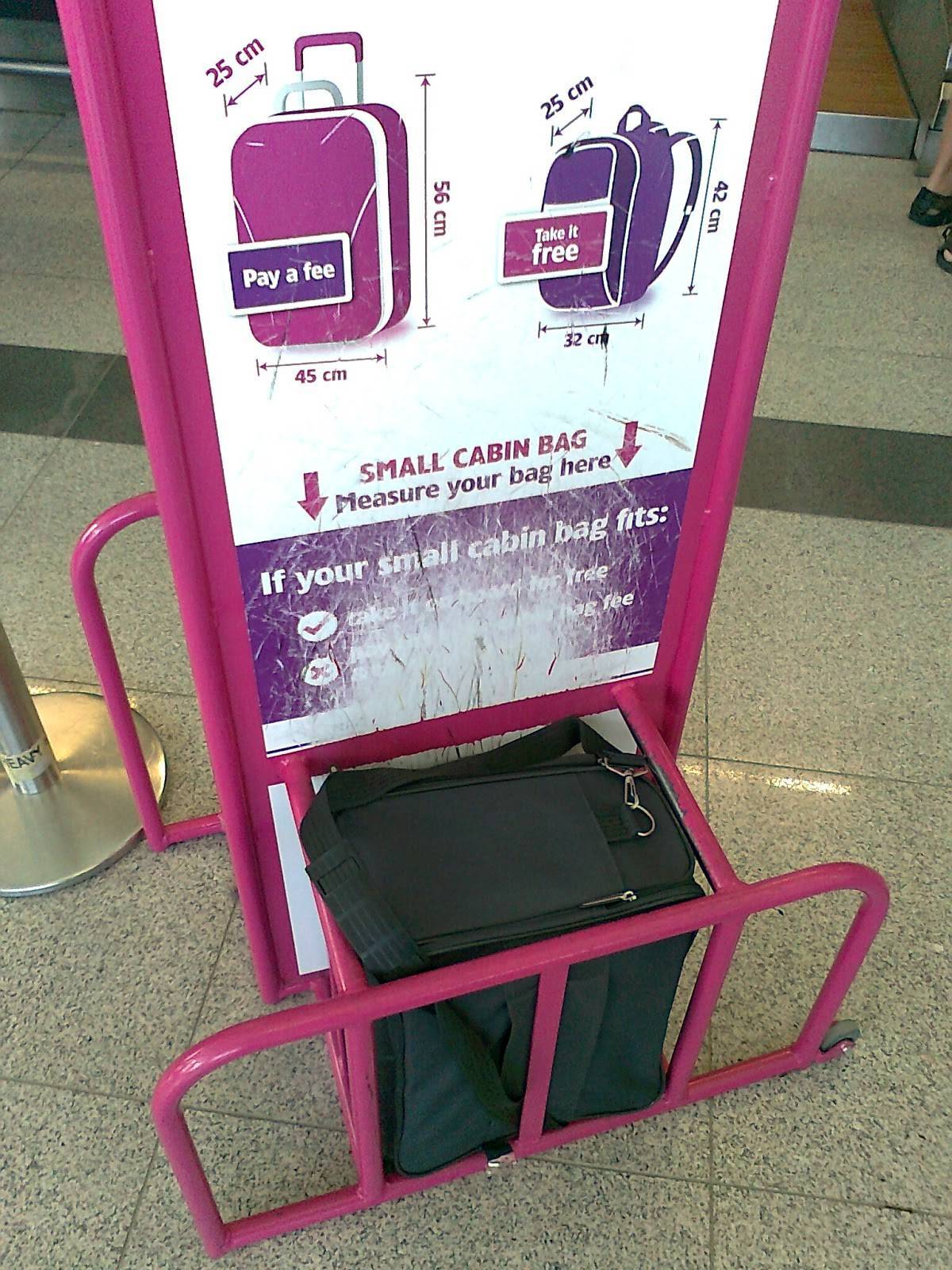 В зоне сдачи багажа можно узнать, соответствует ли ручная кладь допустимым размерам с помощью рамки. Если во время посадки будет обнаружено, что сумка больших размеров, ее разместят в грузовом отсеке вместе с зарегистрированным багажом. С пассажира возьмут дополнительный сбор.