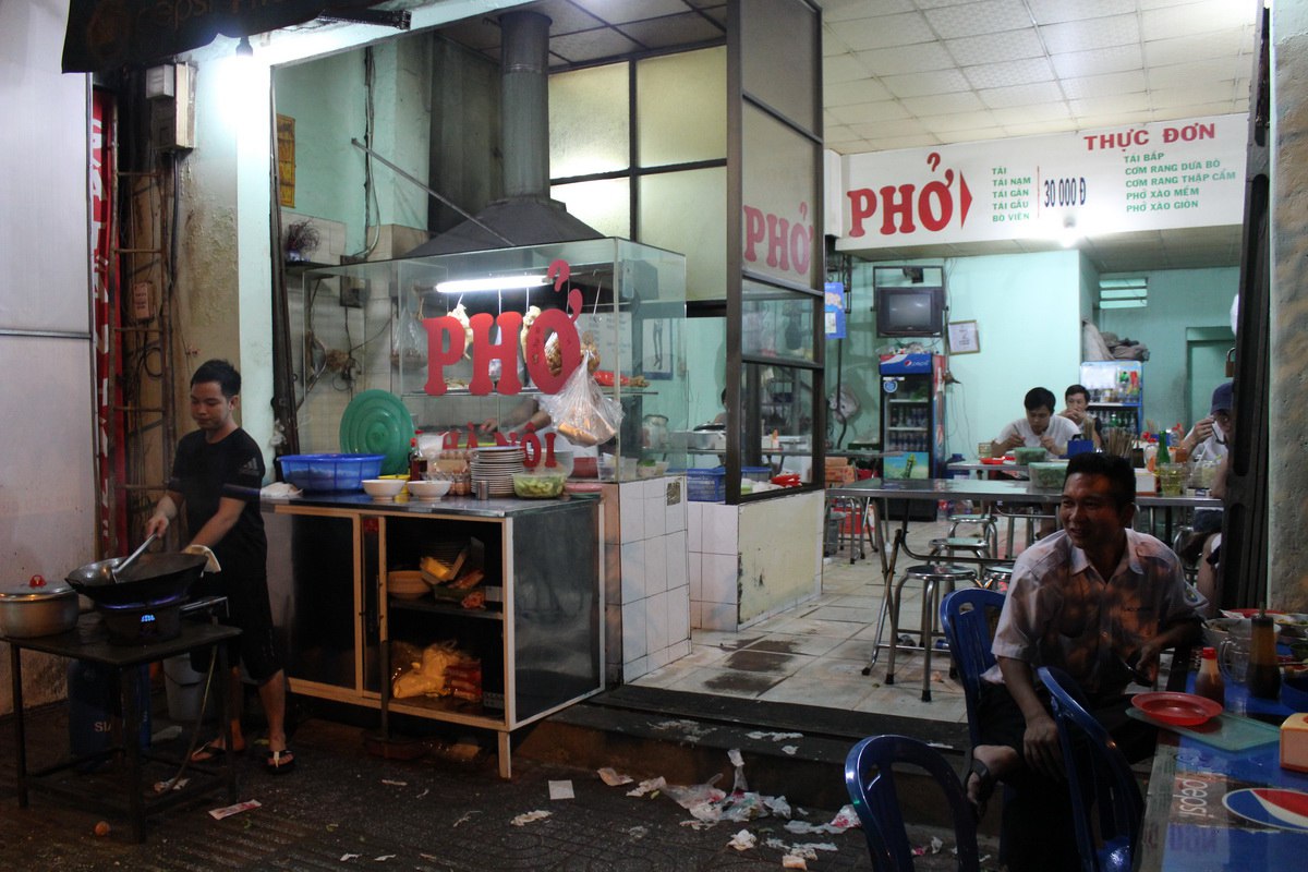 На самом деле, не стоит излишне бояться локалок, особенно если в них сидит много людей — это гарантия, как минимум, свежей пищи. Примерная точка на карте Гугл ниже, только если нужен Фо, то и обращайтесь в локалку, где большими буквами написано PHO. Если пройти ещё метров 50-100, до перекрестка, то на углу будет круглосуточный супермаркет, где можно купить чего-нибудь на завтрак (карта ниже).