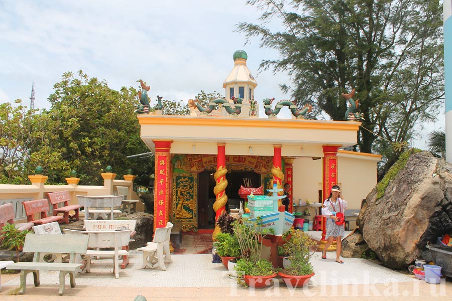 Дворец Кау — одна из достопримечательностей острова Фукуок во Вьетнаме, также он имеет одноимённое название храм Морской владычицы Вьетнама. Доехали мы туда на такси, так как находится он сравнительно недалеко от нашего отеля Фукуока во Вьетнаме, у набережной Дуонг Донга.