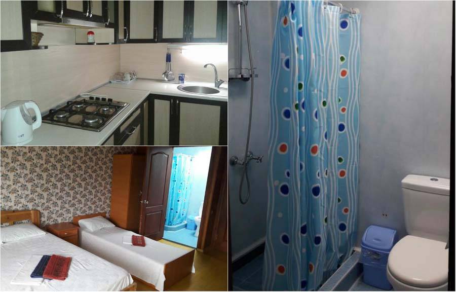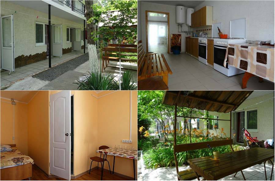 Мы советуем рассмотреть, несмотря на то, что он и не является самым бюджетным для проживания в частном секторе. Зато находится в 300 м от пляжа. С двух сторон есть выход на набережные улицы с обилием развлечений, кафе и ресторанов. Сами же номера представляют собой одна- или двухкомнатные квартиры с кухней и санузлами. Двор небольшой. Есть место для отдыха в беседке, выделено место для приготовления барбекю. В здании всего 4 номера. Владельцы живут отдельно. Так что мешать летнему отдыху никто не будет. Из минусов – парковка на 1 автомобиль, отсутствие уборки в номерах. Бронировать жилье лучше на месте, по адресу ул. Революции 26, так выйдет дешевле.