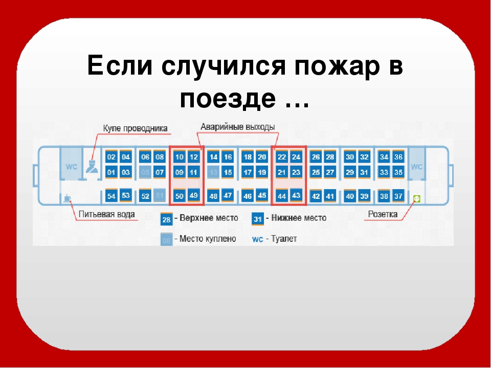 Если покупать билеты через интернет, на сайте РЖД, то при покупке будет предложено выбрать место на схеме. Верхнее место или нижнее зависит от того, четный его номер или нет. Но как выяснить схему аварийных выходов?