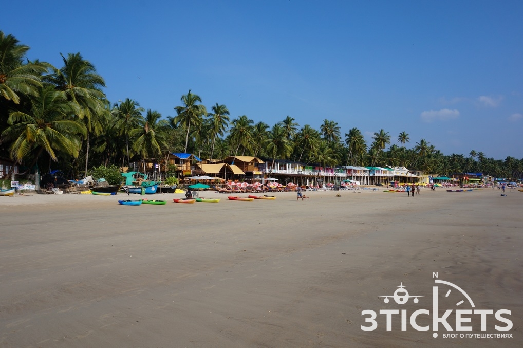 - Калангут. К белому песку, который переливается разными оттенками, добавляется развитая индустрия туризма и большое количество отдыхающих на пляже.