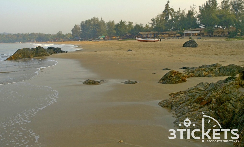 Отзывы об отдыхе на этом пляже преимущественно положительные, только отдыхающие предостерегают, что в море много подводных течений. А если ехать с Арамболя, то можно полюбоваться невиданными красотами Индии. Береговая линия не совсем “дикая”, есть шезлонги и шеки.