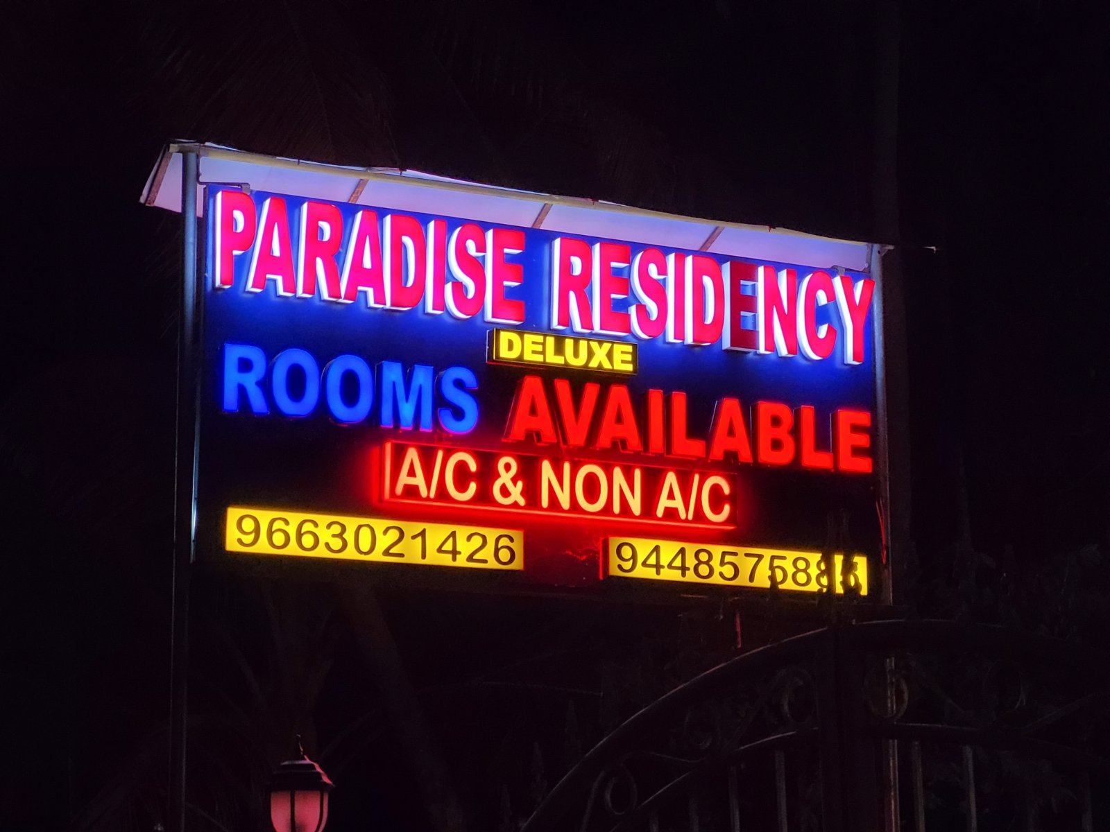 Между автовокзалом и главной храмовой улицей находится высококомфортабельный Paradise Residency. За счёт того, что здание расположено вглубине от дороги, здесь создаётся эффект относительной тишины и спокойствия.