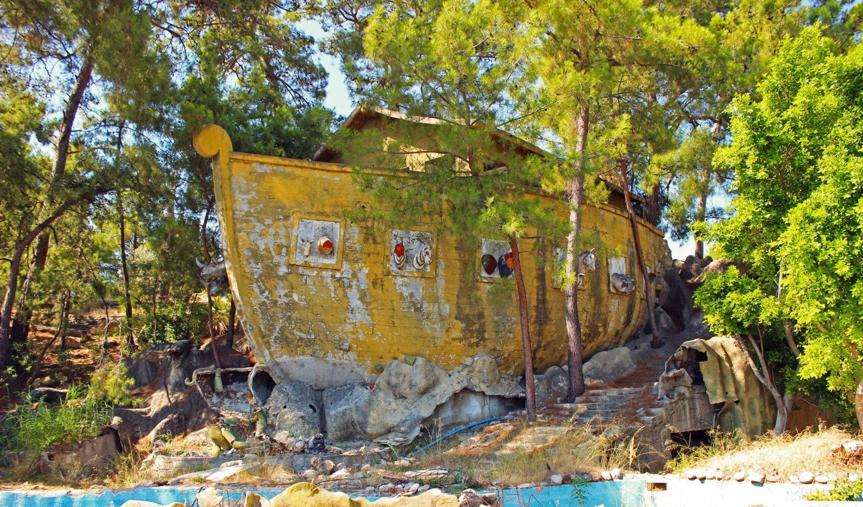 Вместо забора вокруг «детского сектора» вьется гигантская гусеница, а на искусственных деревьях, которые местами не отличить от настоящих, «растут» невиданные плоды. Олени вперемешку с громадными мухоморами, «бродящие» тут и там козлы, бараны, обезьяны, пингвины, черепахи… Тут же – настоящий Ноев ковчег с многочисленными обитателями, от которых, правда, остались только рожки да ножки.