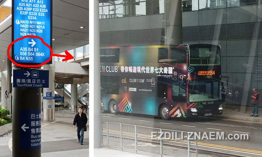 Прибыв в аэропорт Гонконга идем по указателям с иконкой автобуса и надписью “To City” – нам нужен автобус B4.