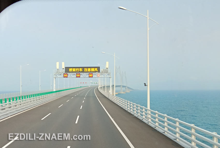Этот мост занимает 45 минут на машине или маршрутном автобусе, 70 минут на пароме из Чжухая в Гонконг или около трех часов на машине.