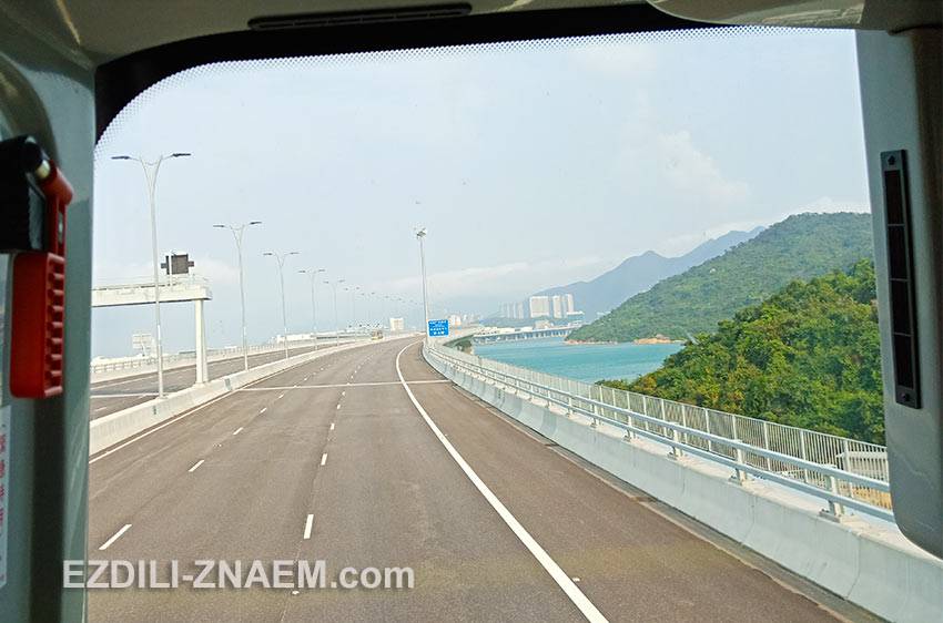 Далее следует подводный тоннель длиной 6,7 километра. Он проложен под заливом и выходит на поверхность уже перед административной границей Гонконга на третьем искусственном острове.