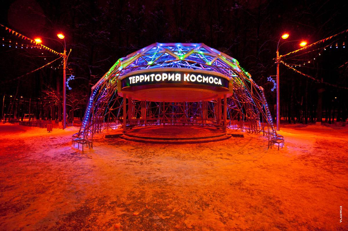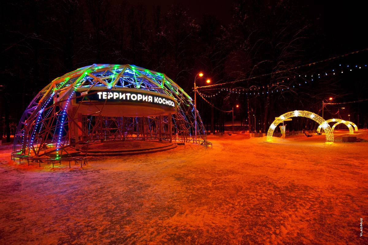 HD-фото космических новогодних конструкций на территории космоса Центрального городского парка города Королёва Московской области